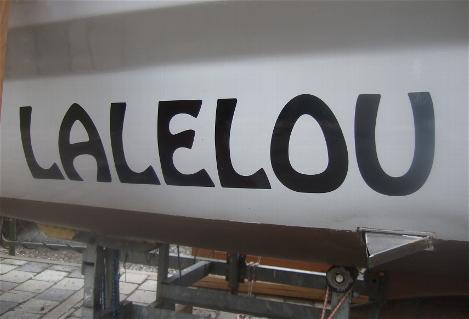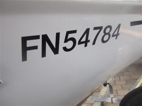 Beklebung: Bootsname, Bootskennung, Zierstreifen