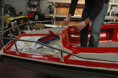 - Umheben des Boots, damit die Auflageflächen gestrichen werden können